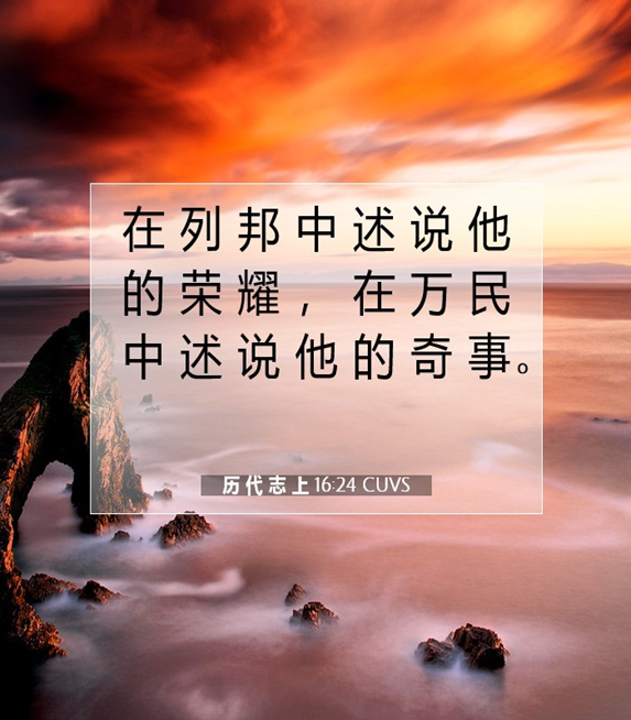 在列邦中述说祂的荣耀,在万民中述说祂的奇事。【历代志上16:24】