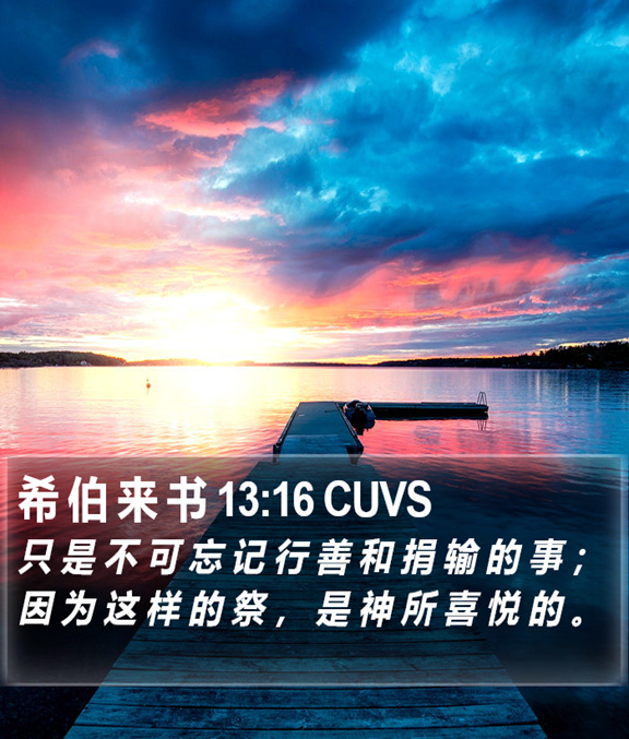 只是不可忘记行善和捐输的事,因为这样的祭是神所喜悦的。【希伯来书13:16】