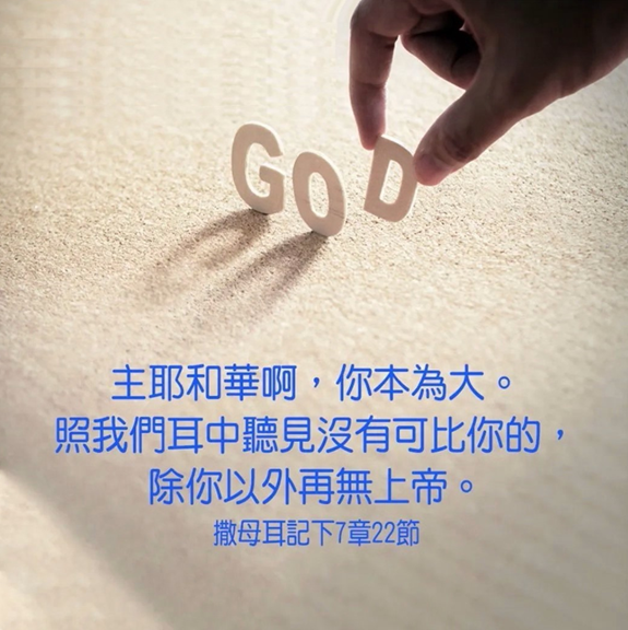 主耶和华啊,祢本为大,照我们耳中听见,没有可比祢的;除祢以外再无神。【撒母耳记下7:22】