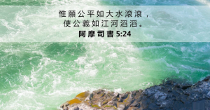 惟愿公平如大水滚滚,使公义如江河滔滔。【阿摩司书5:24】