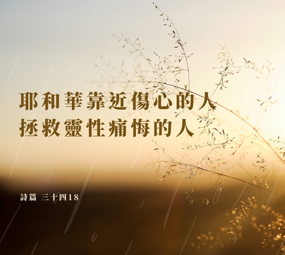 耶和华靠近伤心的人,拯救灵性痛悔的人。【诗篇34:18】