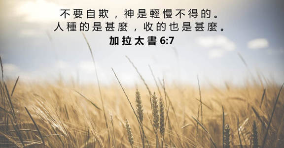 不要自欺,神是轻慢不得的。人种的是什么,收的也是什么。【加拉太书6:7】