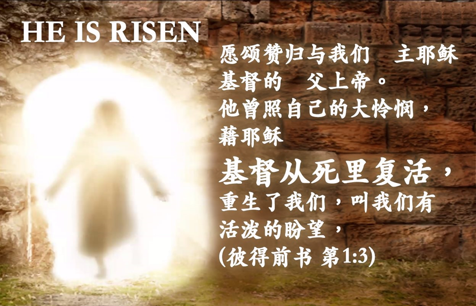 慈爱的天父,我们感谢赞美祢!藉着基督从死里复活,拯救了我们,使我们得永生,并进入那活泼的盼望。