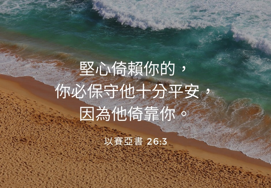 坚心倚赖祢的,祢必保守他十分平安,因为他倚靠祢。【以赛亚书26:3】