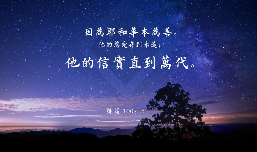 因为耶和华本为善,祂的慈爱存到永远,祂的信实直到万代。【诗篇100:5】