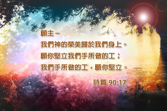 愿主我们神的荣美归于我们身上,愿祢坚立我们手所做的工——我们手所做的工,愿祢坚立。【诗篇90:17】