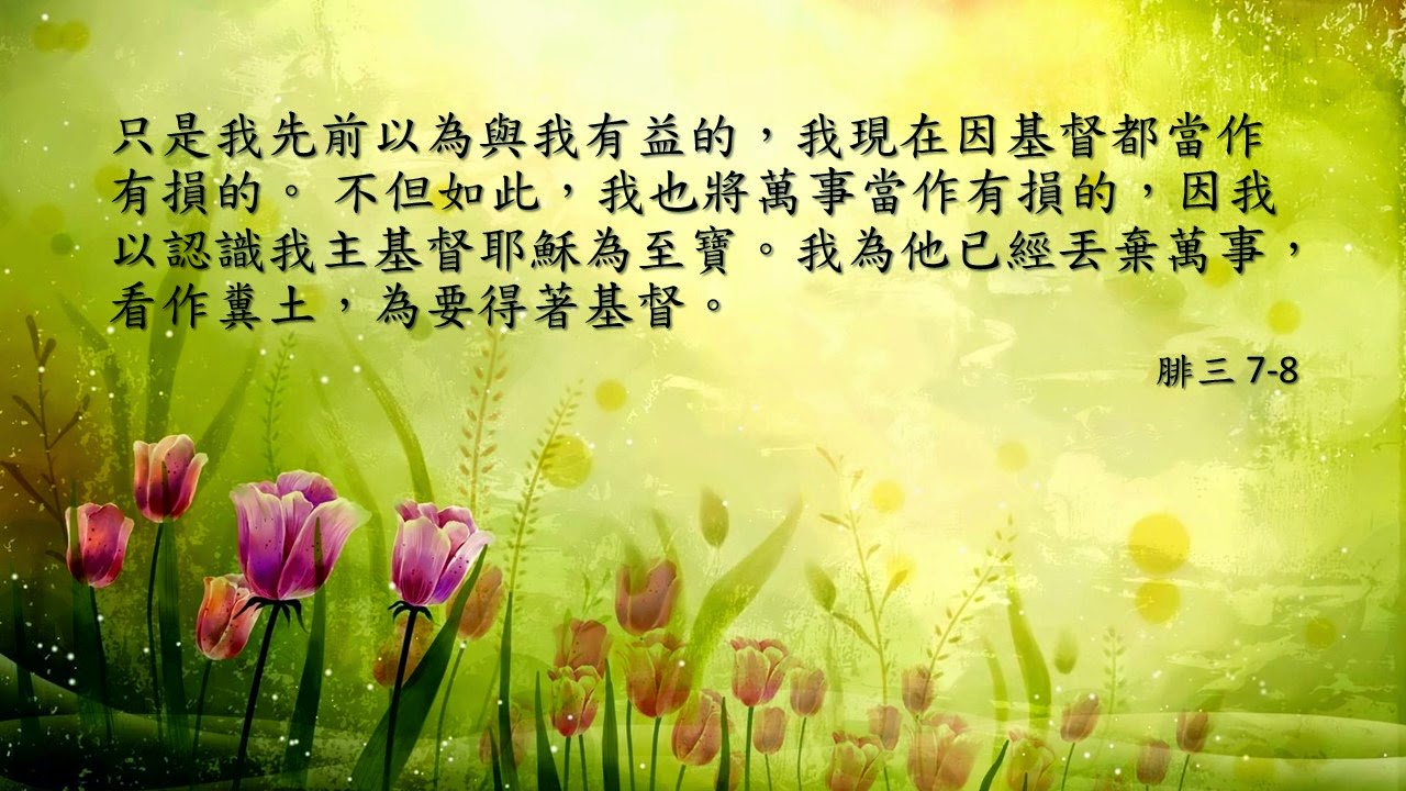 天父啊,祢是我们的生命,比世上的一切更可宝贵。让我们也有使徒保罗那样的心,把先前我们以为有益的,因基督都当作有损的,视如粪土;并以认识主耶稣基督为至宝,努力追求,为要得着基督。