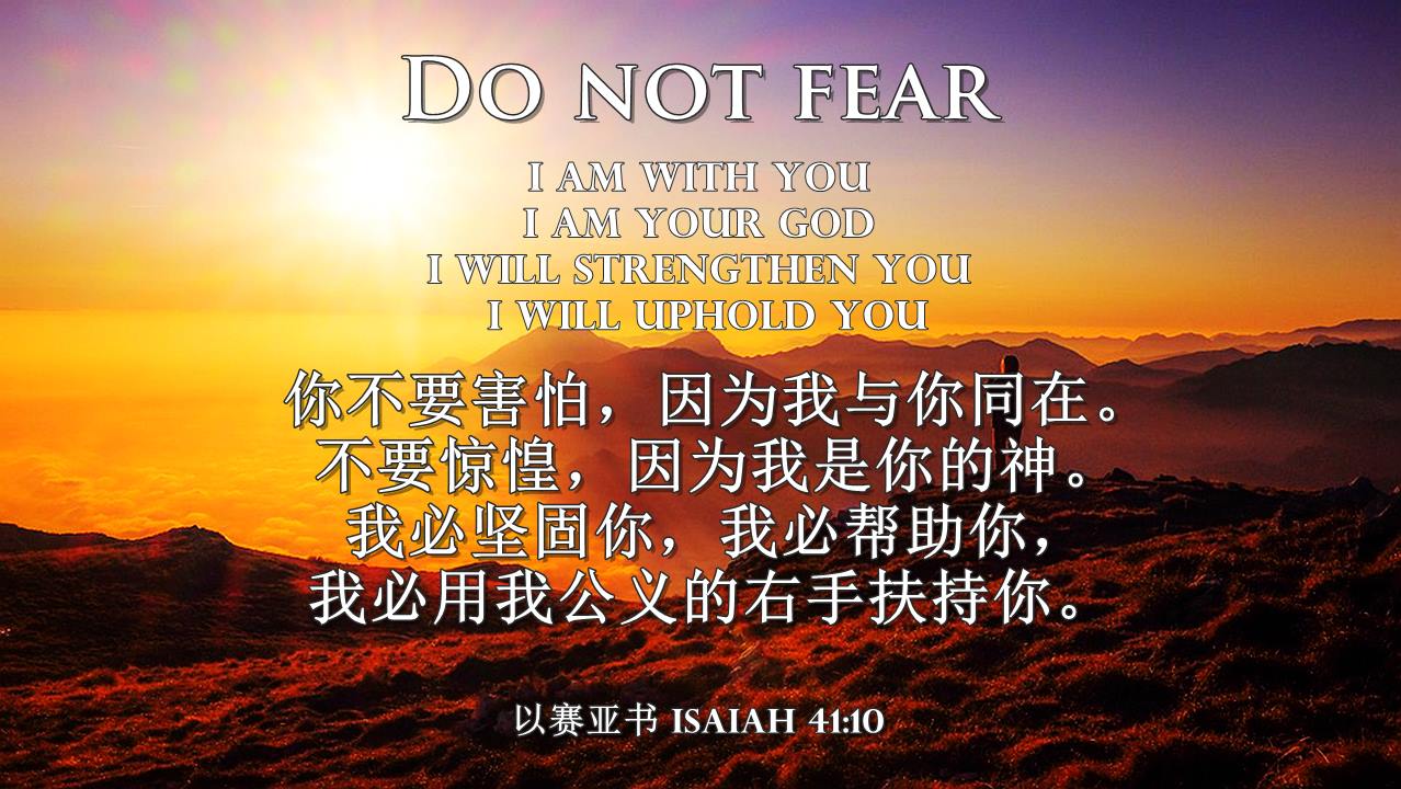 你不要害怕,因为我与你同在;不要惊惶,因为我是你的神。我必坚固你,我必帮助你;我必用我公义的右手扶持你。【以赛亚书41:10】
