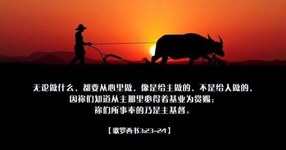 无论做什么,都要从心里做,像是给主做的,不是给人做的,因祢们知道从主那里必得着基业为赏赐;祢们所事奉的乃是主基督。【歌罗西书3:23-24】