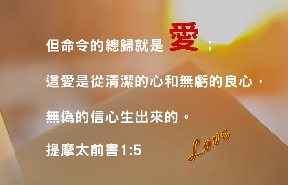 但命令的总归就是爱,这爱是从清洁的心和无亏的良心、无伪的信心生出来的。【提摩太前书1:5】