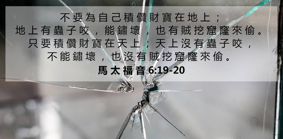 不要为自己积攒财宝在地上;地上有虫子咬,能锈坏,也有贼挖窟窿来偷。只要积攒财宝在天上;天上没有虫子咬,不能锈坏,也没有贼挖窟窿来偷。因为你的财宝在哪里,你的心也在那里。【马太福音6:19-21】