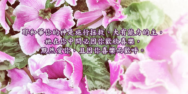耶和华你的神,是施行拯救,大有能力的主,他在你中间必因你欢欣喜乐,默然爱你,且因你喜乐而欢呼。【西番雅书3:17】