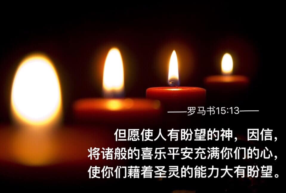 但愿使人有盼望的神,因信将诸般的喜乐、平安充满你们的心,使你们藉着圣灵的能力大有盼望。【罗马书15:13】