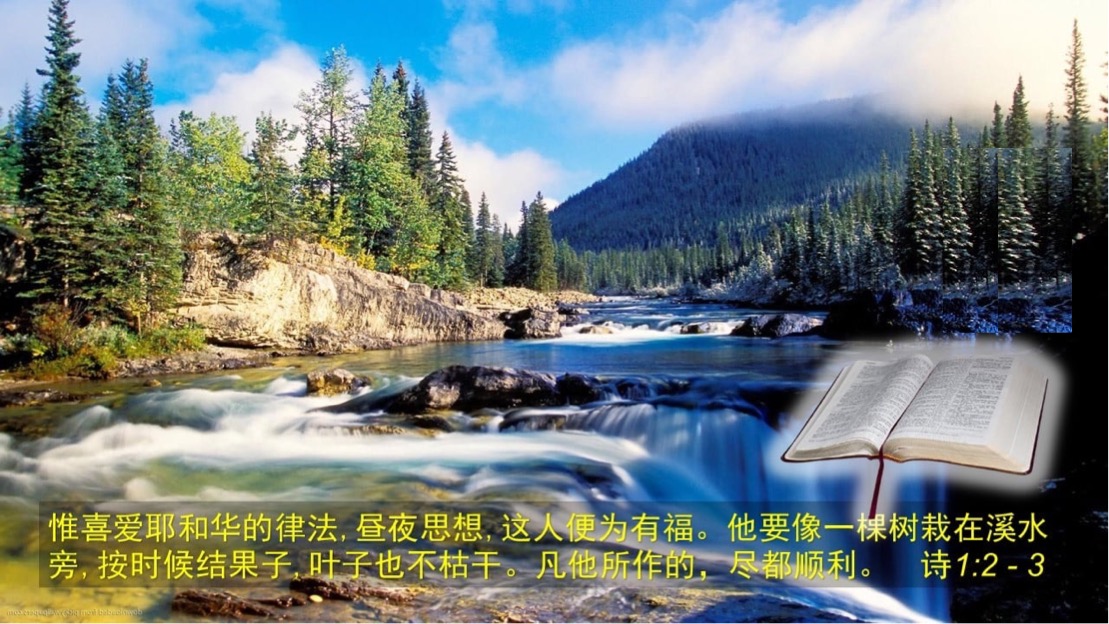 惟喜爱耶和华的律法,昼夜思想,这人便为有福!他要象一棵树,栽在溪水旁,按时候结果子,叶子也不枯干。凡他所作的,尽都顺利。【诗篇1:2-3】
