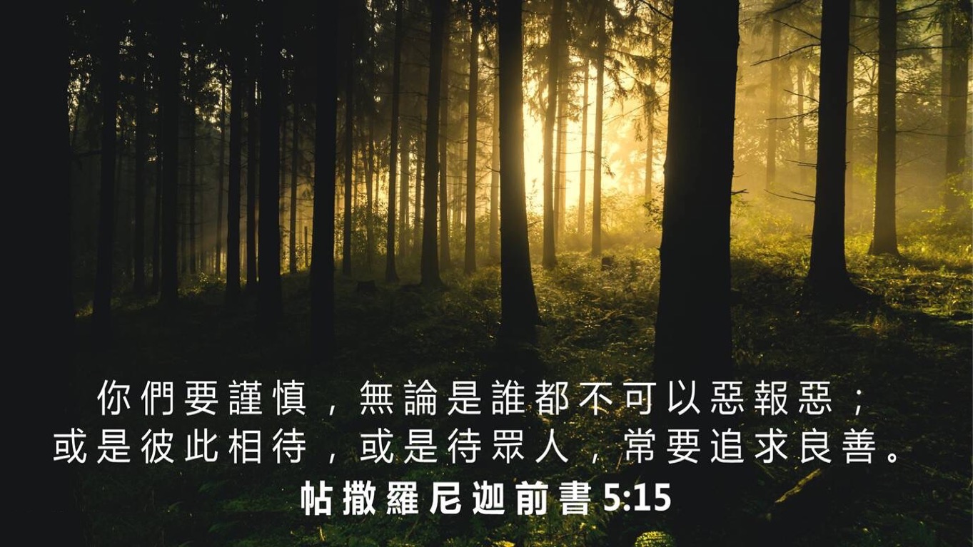 你们要谨慎,无论是谁都不可以恶报恶;或是彼此相待,或是待众人,常要追求良善。【帖前5:15】