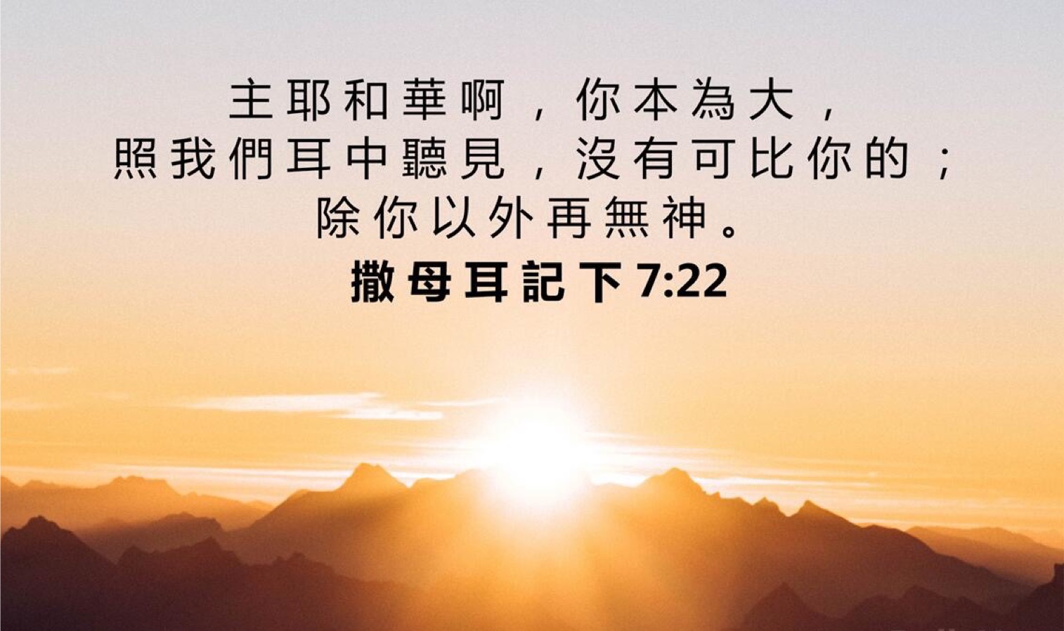 主耶和华啊,祢本为大,照我们耳中听见,没有可比祢的;除祢以外再无神。【撒母耳记下7:22】