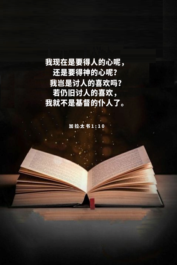我现在是要得人的心呢?还是要得神的心呢?我岂是讨人的喜欢吗?若仍旧讨人的喜欢,我就不是基督的仆人了。【加拉太书1:10】