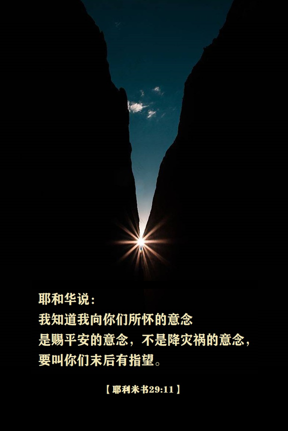 耶和华说:我知道我向你们所怀的意念是赐平安的意念,不是降灾祸的意念,要叫你们末后有指望。【耶利米书29:11】