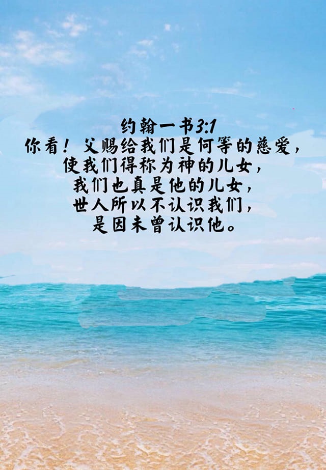 你看父赐给我们是何等的慈爱,使我们得称为神的儿女;我们也真是他的儿女。【约翰一书3:1上】