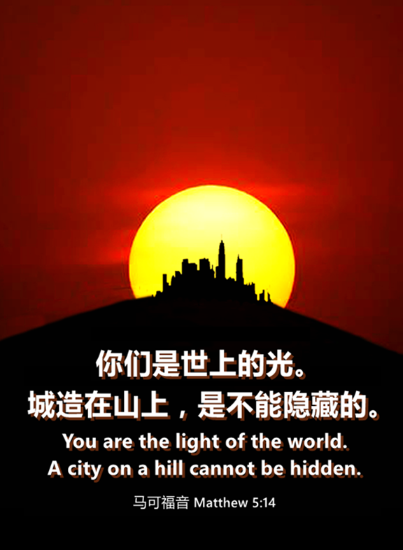 你们是世上的光。城造在山上是不能隐藏的。【马太福音5:14】
