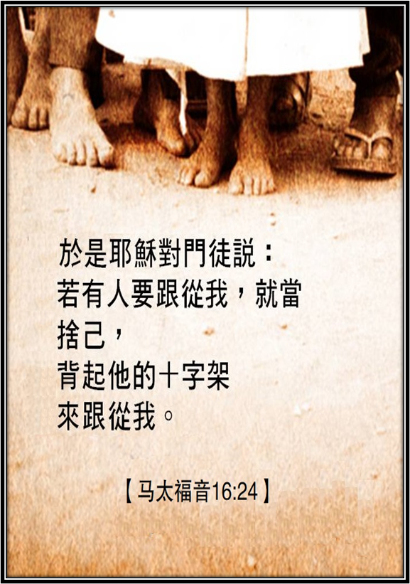 于是耶稣对门徒说:若有人要跟从我,就当舍己,背起他的十字架来跟从我。【马太福音16:24】