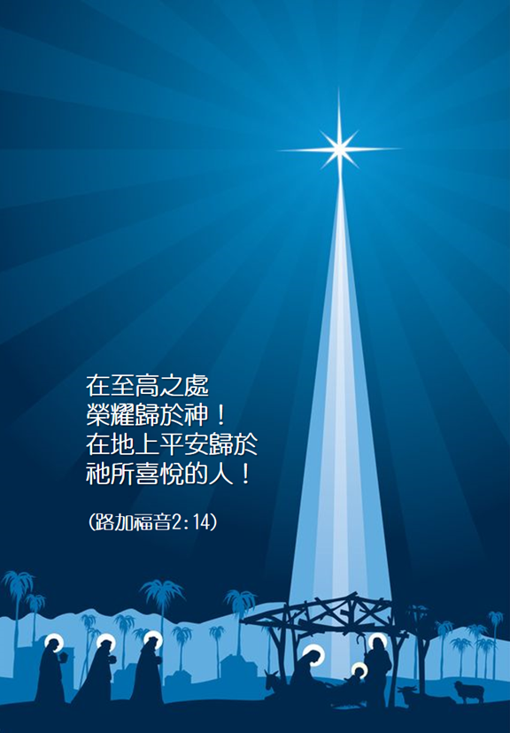 神啊,当耶稣降生在伯利恒后,祢差遣天使向在伯利恒野地里的牧羊人显现,报给他们关乎万民的大喜信息:救主基督降生了!并有天使天兵歌唱:“在至高之处荣耀归与神!在地上平安归与他所喜悦的人!”